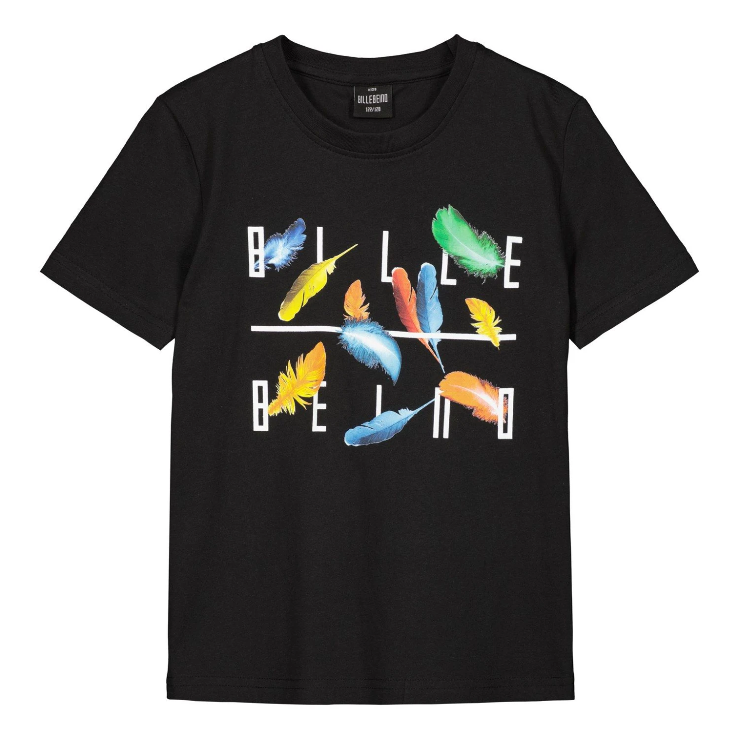 Billebeino lasten lyhythihainen t-paita. Edessä värikkäitä sulkia, sekä Billebeino -tekstilogo.