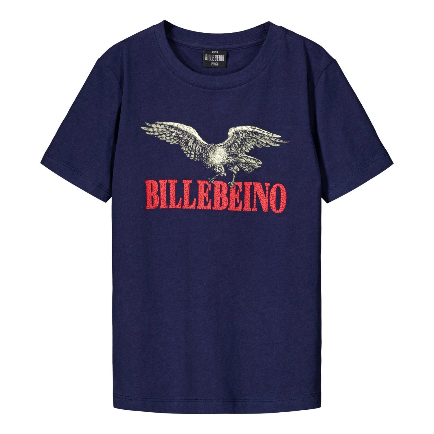 Billebeinon lasten malliston t-paita, jossa kotka-aiheinen printti edessä. Lyhyet hihat ja pyöreä pääntie, ja pääntiellä joustava resori. Niskassa brändin brick-logo. Materiaali erityisen pehmeäksi viimeisteltyä puuvillaa.