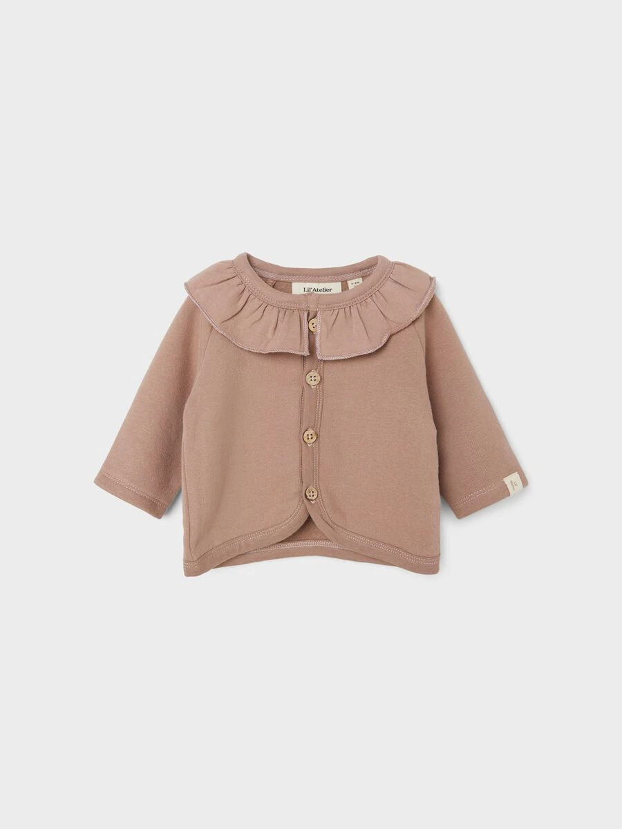 Lil Atelier lasten neuletakki röyhelöyksityiskohdilla. Loose fit -malli ja o-pääntie. Neuleessa miellyttävän tuntuinen pehmeä sisäpinta. Sisältää luomupuuvillaa.