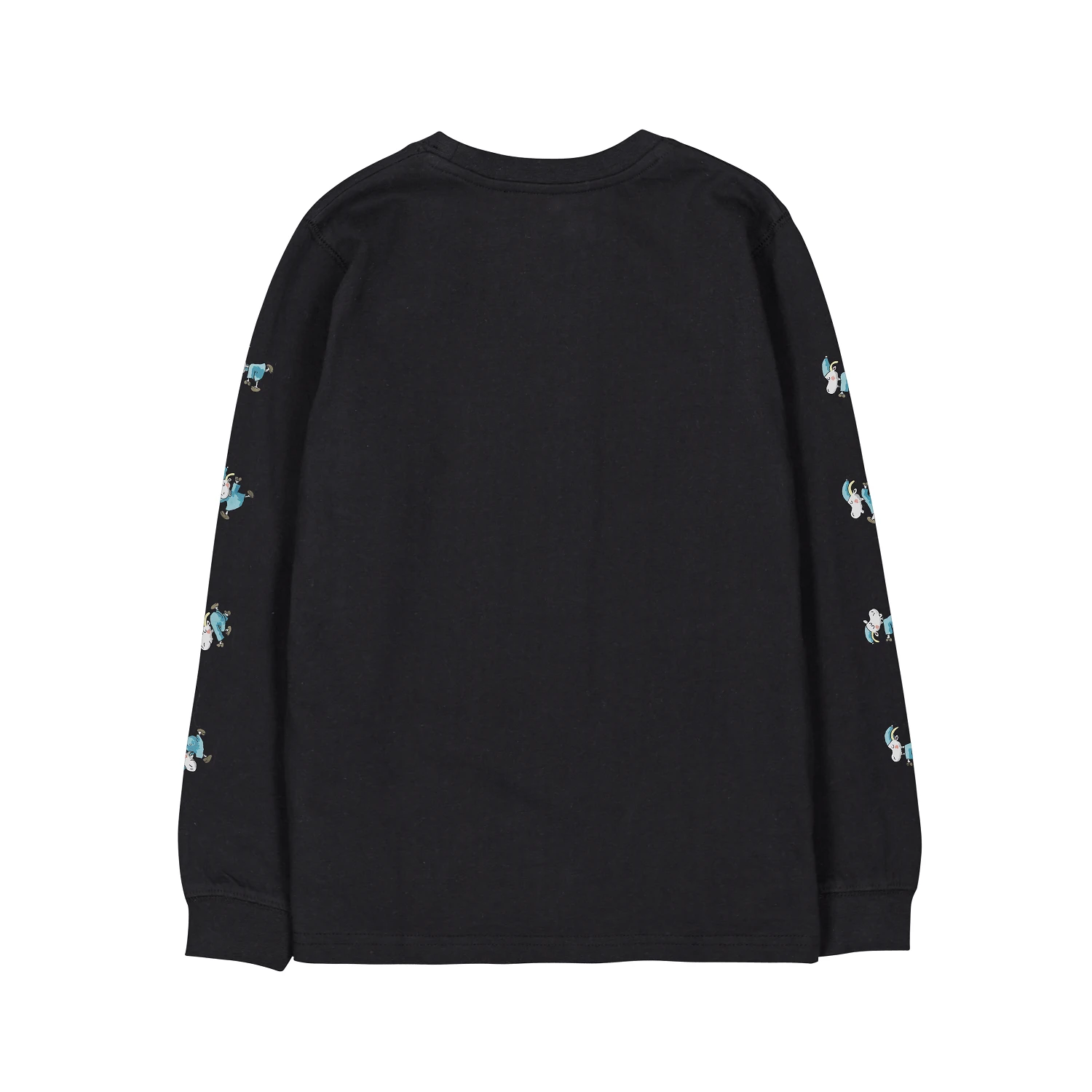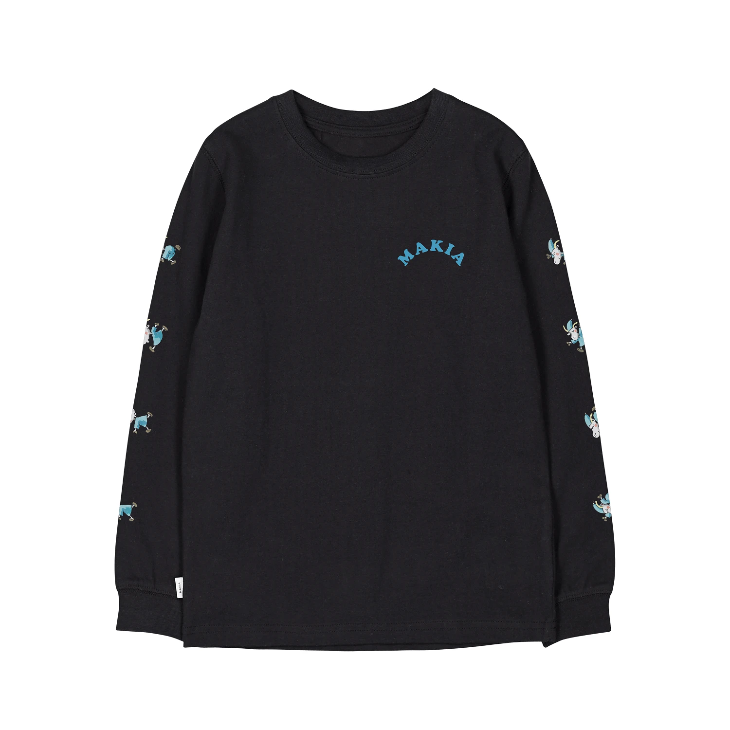 Mauri Kunnas x Makia -malliston lasten pitkähihainen t-paita, jossa Mauri Kunnaksen piirtämät printit rinnassa sekä hihoissa. Pyöreä pääntie ja pitkät hihat. Hihansuissa ja pääntiellä joustavat resorit. Materiaali pehmeää luomupuuvillaa.