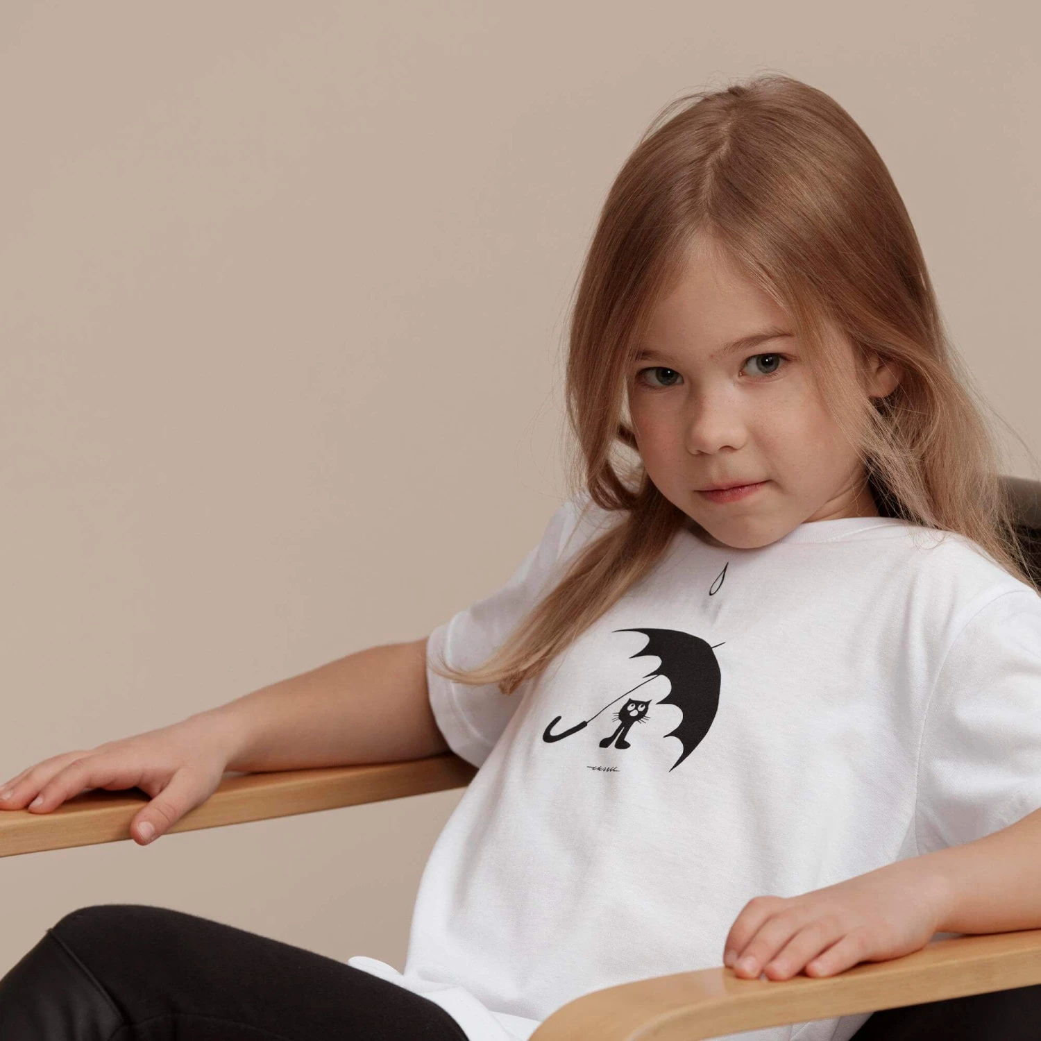 Lasten t-paita, jossa on Olle Eksellin taideteos rinnassa.
