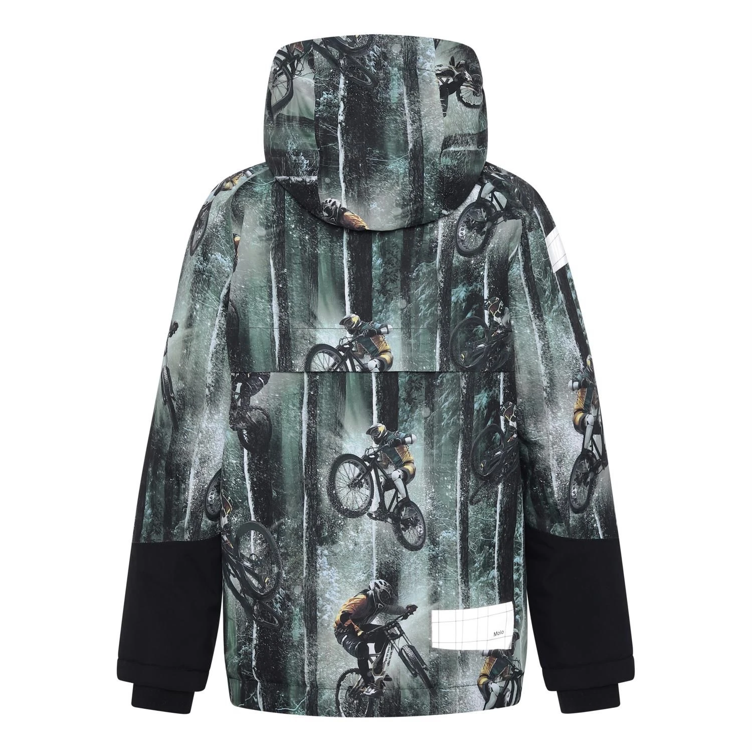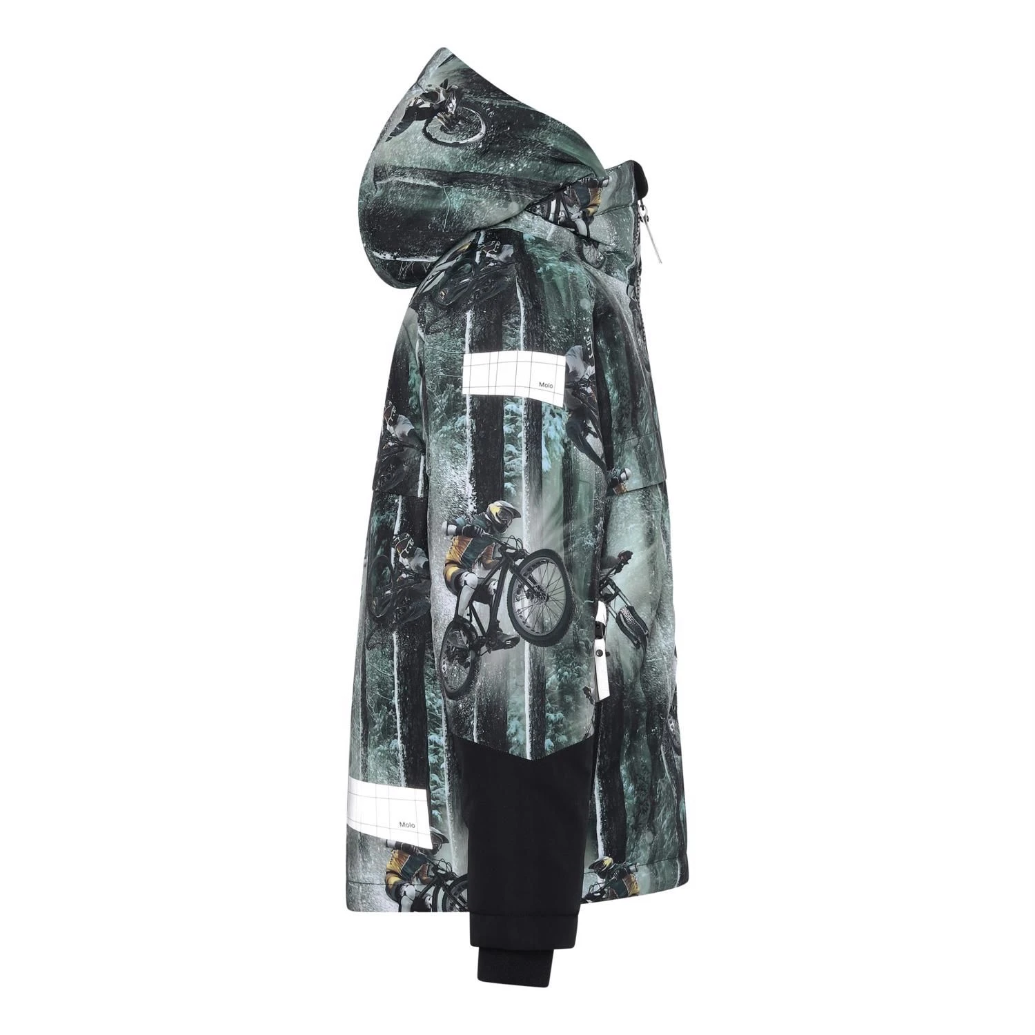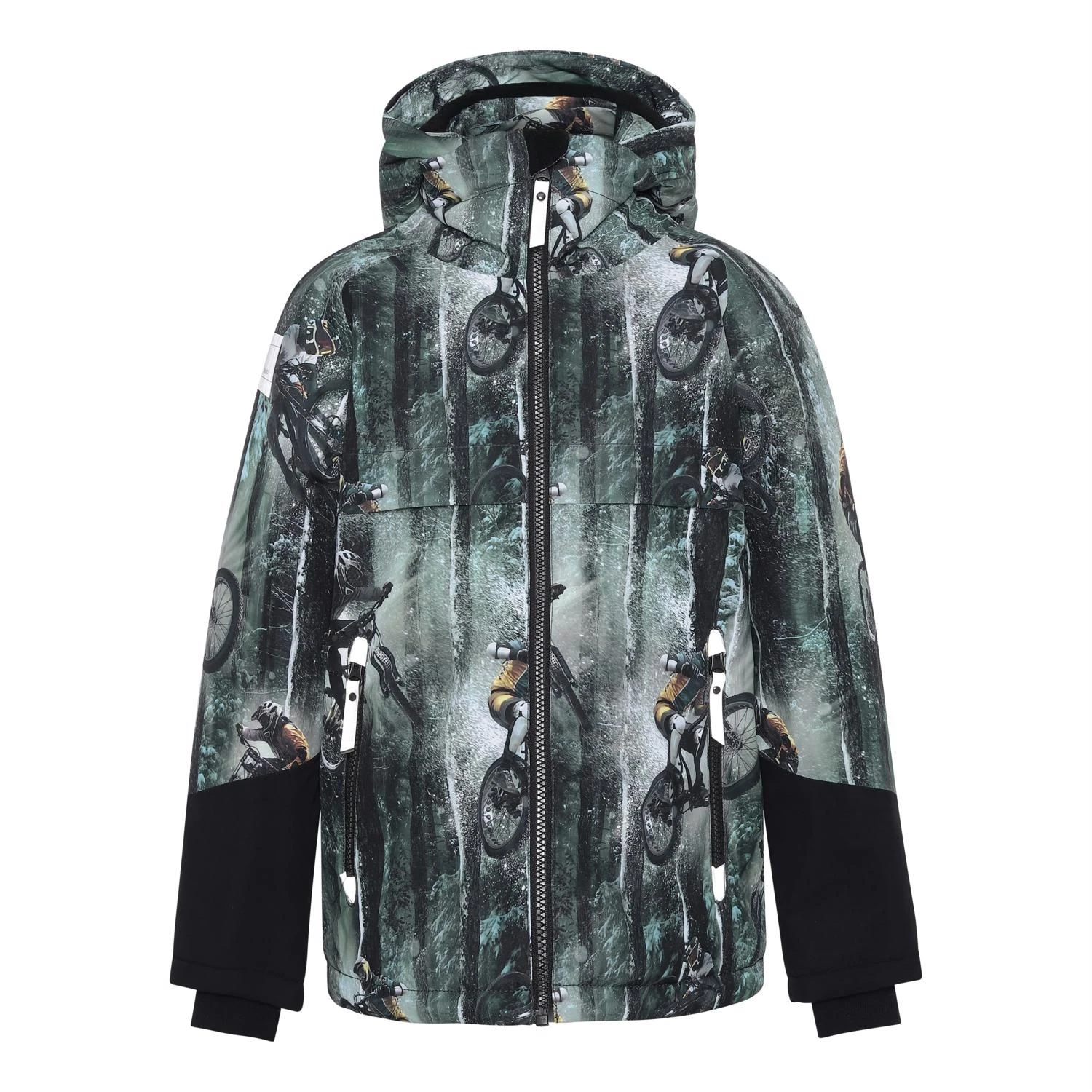 Lasten tuulen- ja vedenpitävä maastopyöräkuvioinen talvitakki, Castor. Takissa on irrotettava huppu. Edessä vetoketju ja sivuilla taskut. Näkyvät heijastimet hihojen sivuilla ja takana. Takki on valmistettu tuulenpitävästä, vedenpitävästä ja hengittävästä kankaasta, vuori valmistetaan kierrätetystä polyesteristä. Takissa on vedenkestävä, PFC-vapaa pintakäsittely (Ei sisällä esimerkiksi PFOS:ää, PFOA:ta jne.). Vesipylvään paine: 15.000 mm. hengittävyys: 15.000 g/m2/24hr.