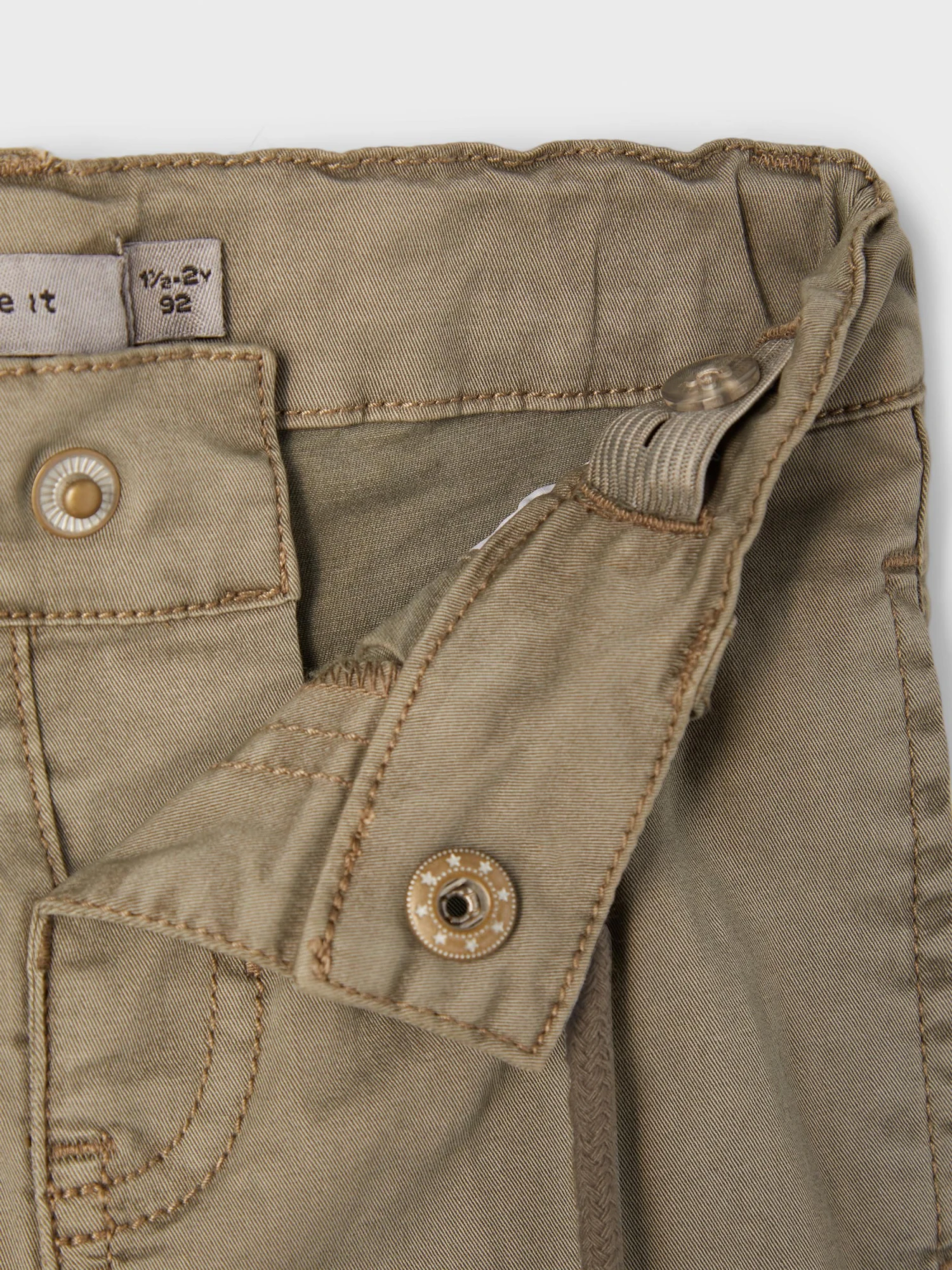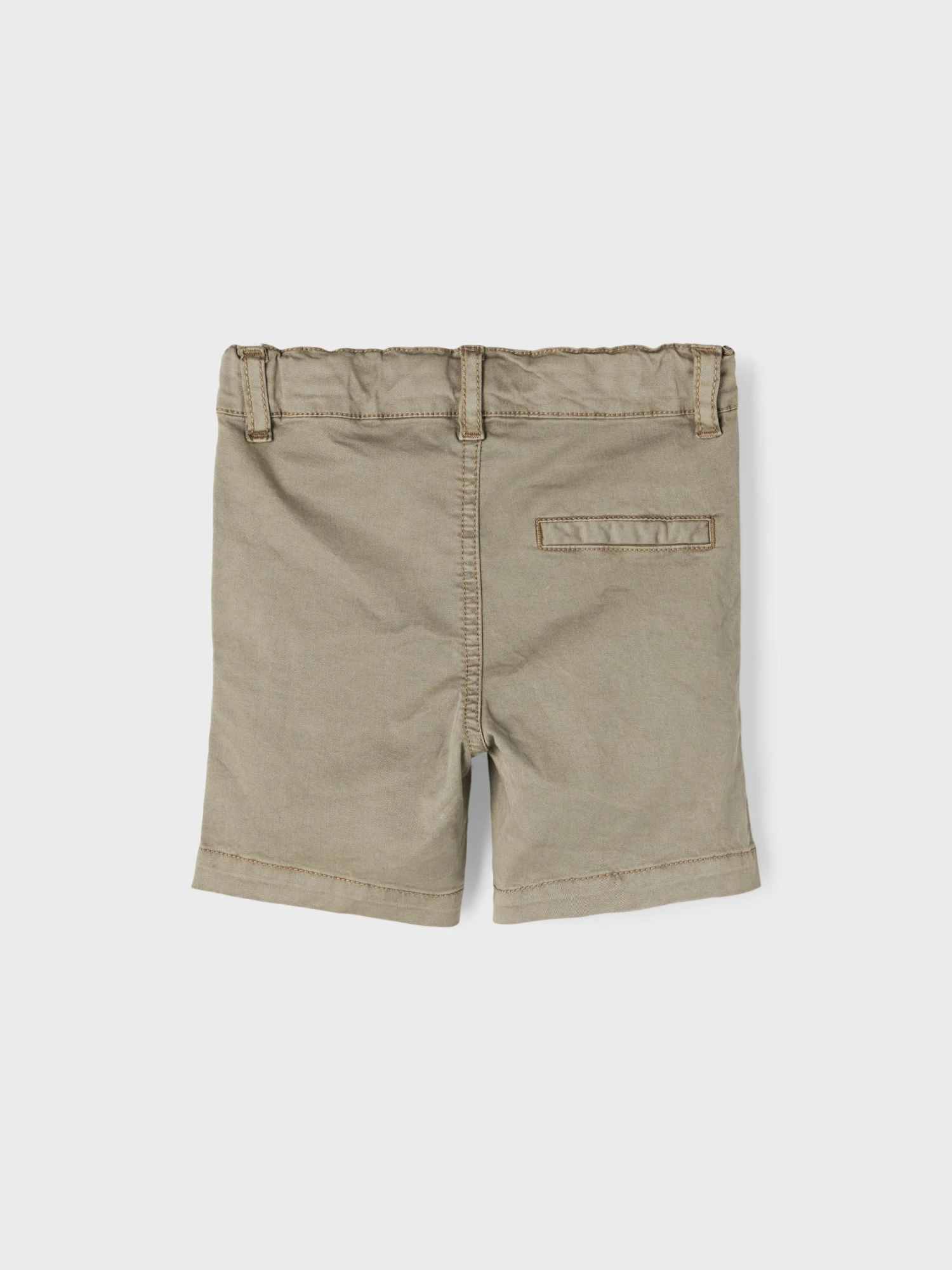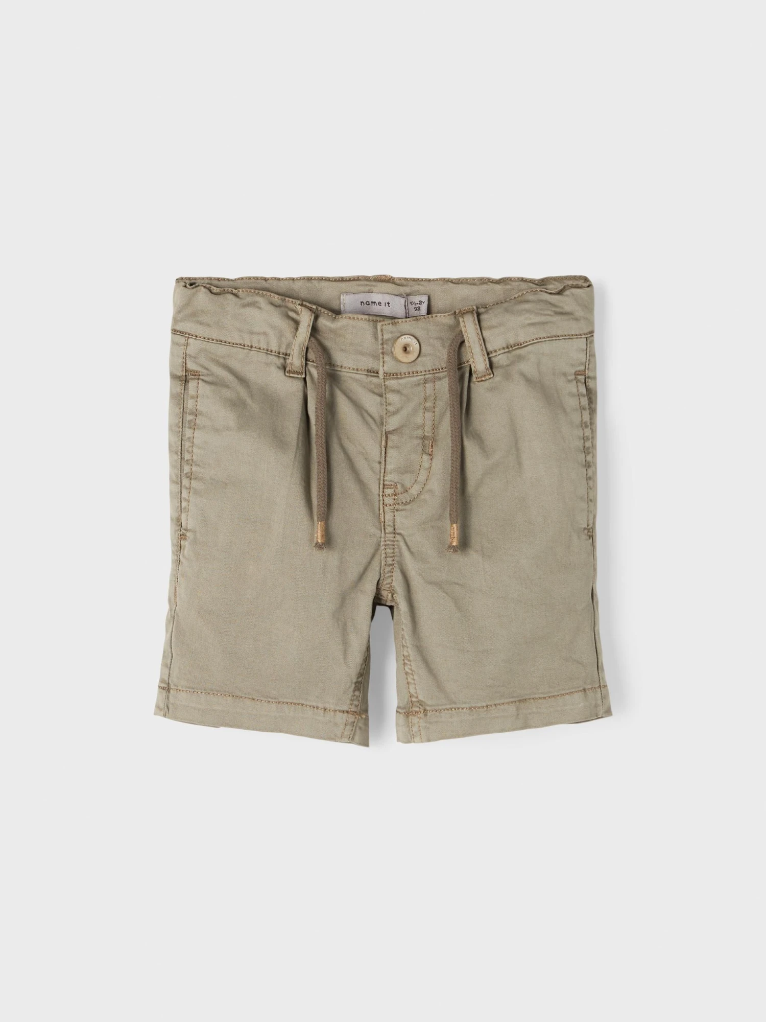 Name It lasten Twill-kankaiset chinoshortsit. Shortseissa on normaali vyötärö, jota pystyy säätämään. Lisäksi molemmilla puolilla shortseissa on etutaskut.