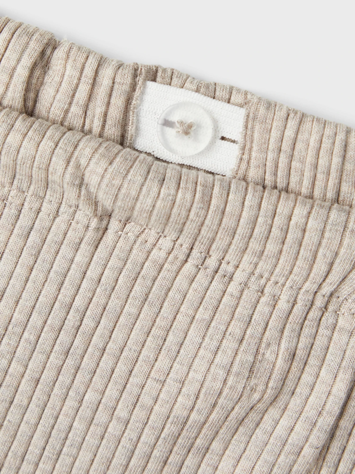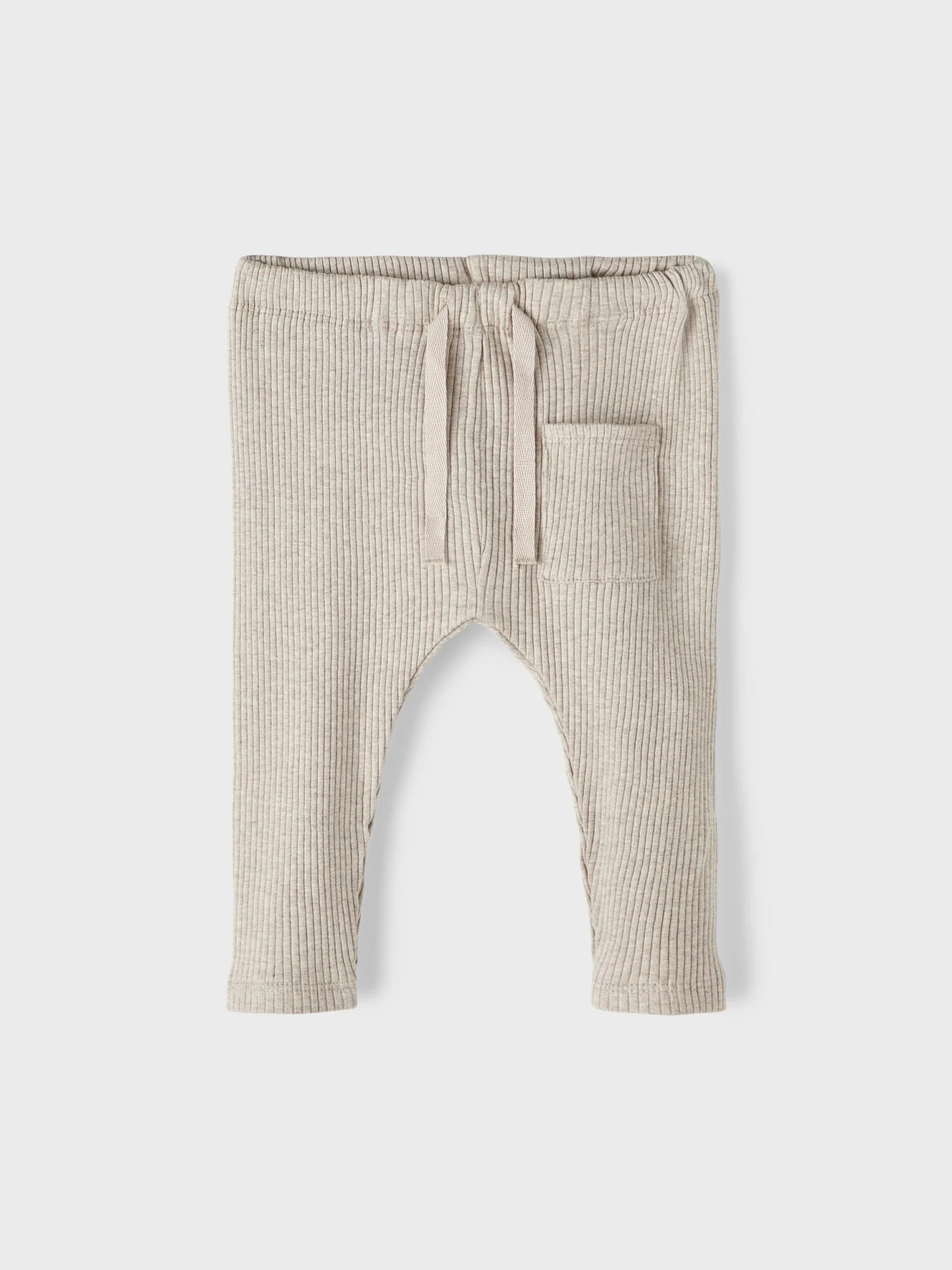 Name It lasten housut. Joustava vyötärö säätönyöreillä. Lisäksi vyötärön kuminauhassa napilla mahdollisuus säätää vyötäröä. Yksityiskohtana edessä tasku.
