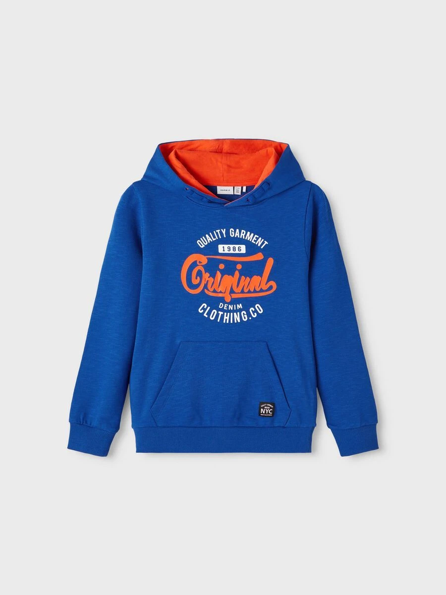 Tyylikäs Name it huppari. Tuotteessa huppu sekä edessä kengurutasku. Kiva printti edessä. Hupparin sisäpuoli harjattua puuvillaa joka on todella pehmeä käyttäjälleen.