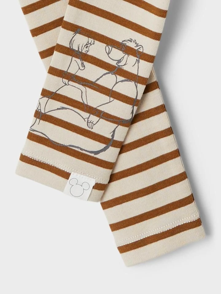 Lasten trikooleggingsit ribbineulosta, joustava vyötärö. Lahkeensuussa Baloo -printti.