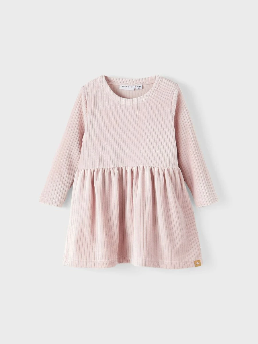 Name It lasten velourinen mekko painonappikiinnityksellä. O-pääntie ja normaali istuvuus. Pehmeää ja kiiltävää velouria jonka kuidut mukautuvat kosketukseen ja luovat kivan efektin.