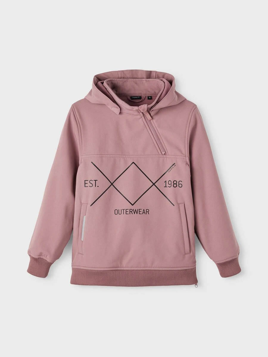 Kierrätetystä polyesteristä valmistettu softshelltakki on kestävä, hengittävä ja tuulen- ja vedenpitävä. Takissa on sivussa vetoketju ja edessä ylhäällä lyhyt vetoketju. Hihoissa ja helmassa on resorit.