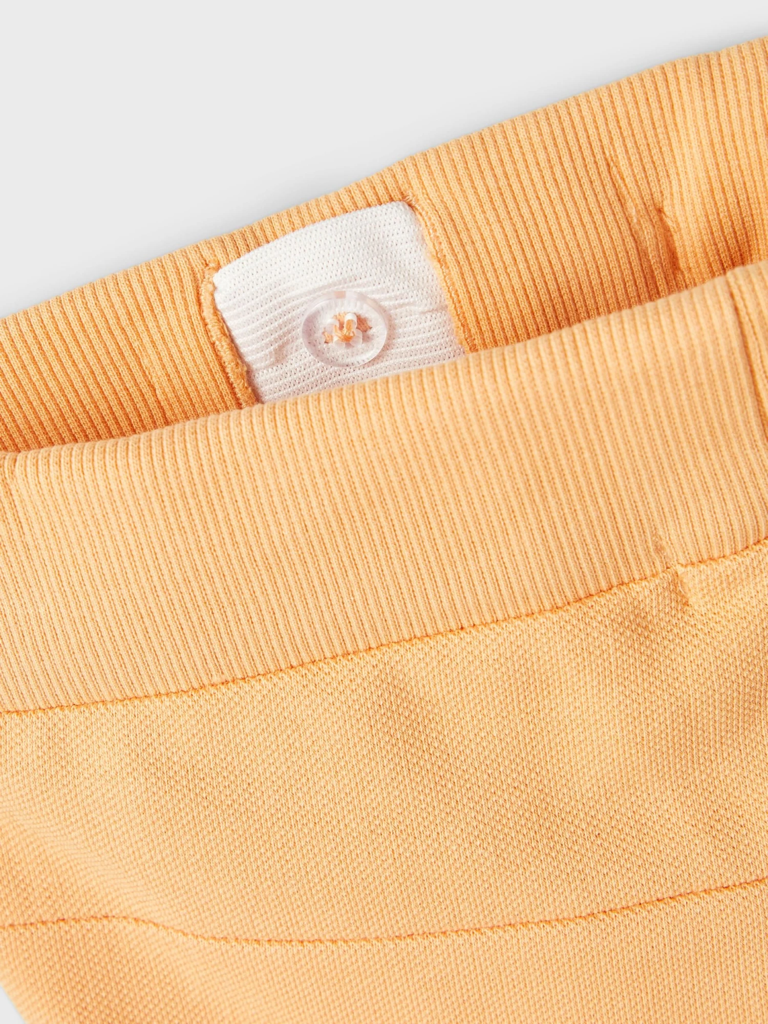Lasten collegeshortsit, joustava vyötärö. Vyötäröllä resori ja säätönyöri. Harjaamaton collegekangas.