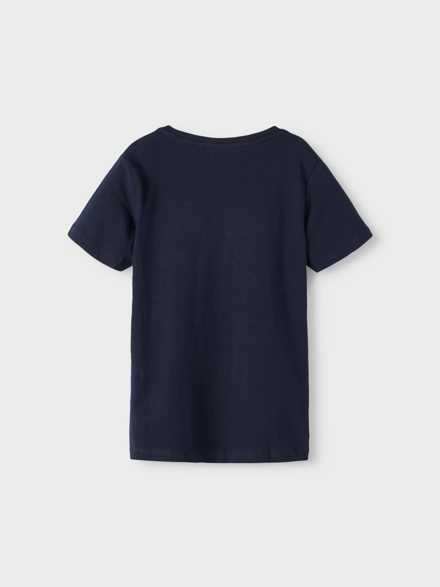 Lasten lyhythihainen t-paita, normaali mitoitus. Pyöreä pääntie, printtikuvio rinnassa.