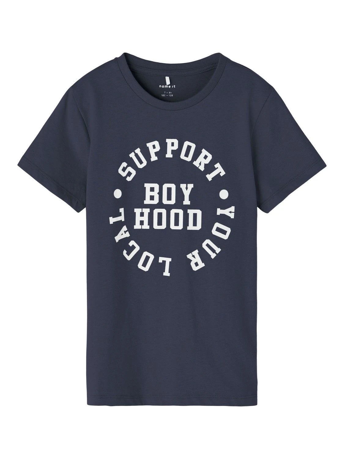 Lasten t-paita kevyttä ja joustavaa luomupuuvillaa. Väljä istuvuus, pudotetut olkasaumat. Edessä printtikuvio.