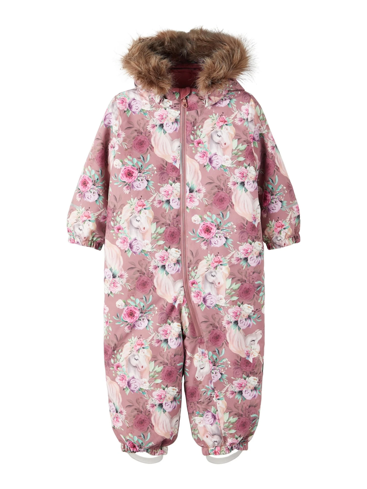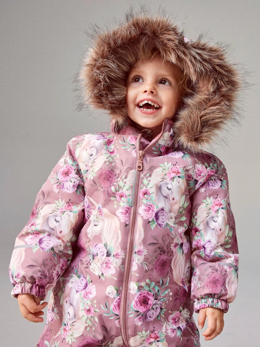 Lasten lämmin talvihaalari printtiaiheena suosittu yksisarvinen.Haalarissa BIONIC FINISH ECO vettähylkivä käsittely.