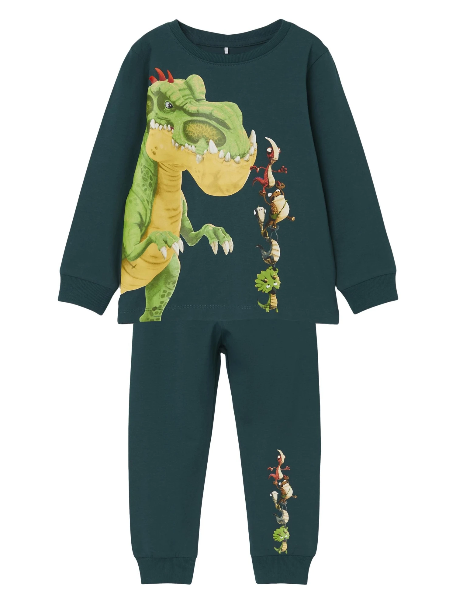 Name it lasten dinosaurus aiheinen yöpuku. Paidassa ja housuissa printtikuvio.