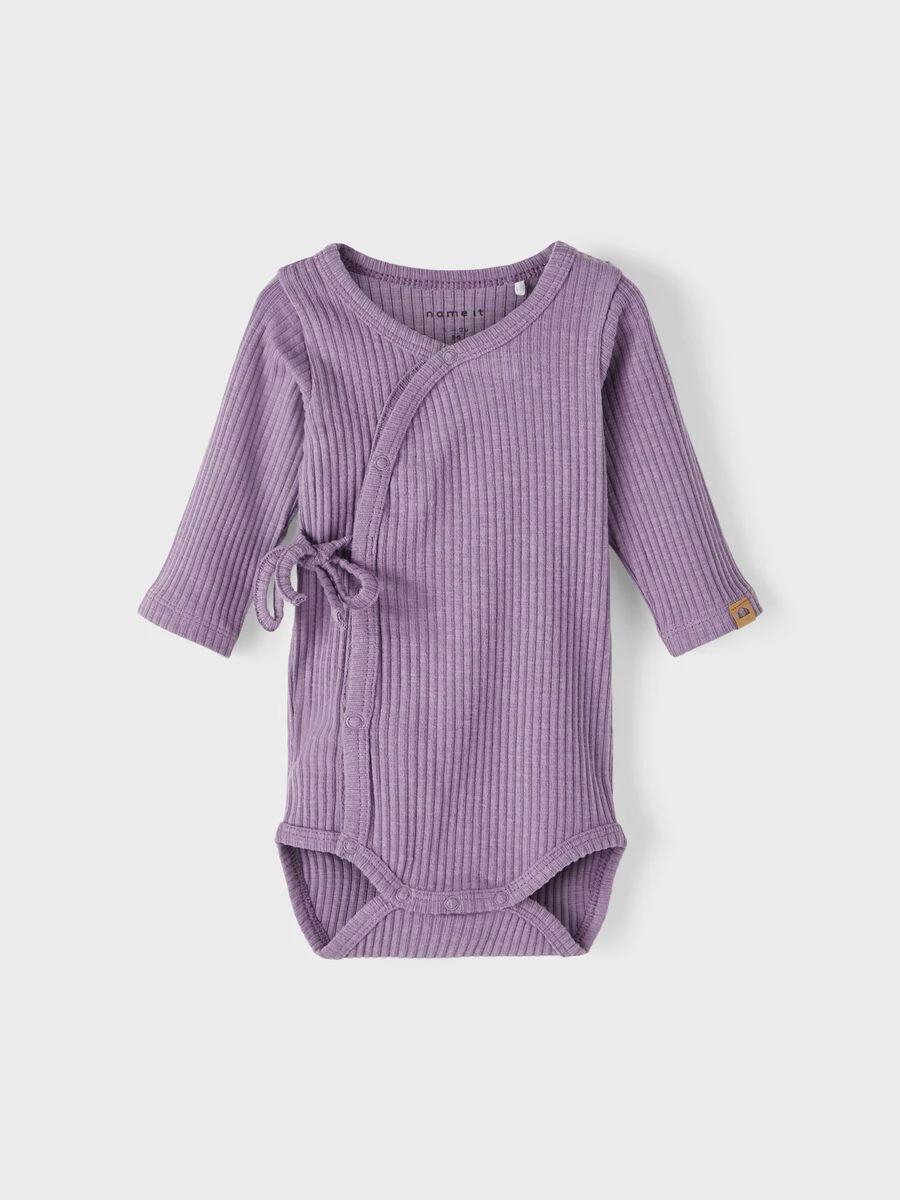 Name it vauvojen kietaisubody. Bodyssa kiinnitys neppareilla sekä edessä olevalla nauhalla. Materiaali ihanan pehmeä sekä joustava. Täydennä asukokonaisuus saman sarjan leggingseillä.