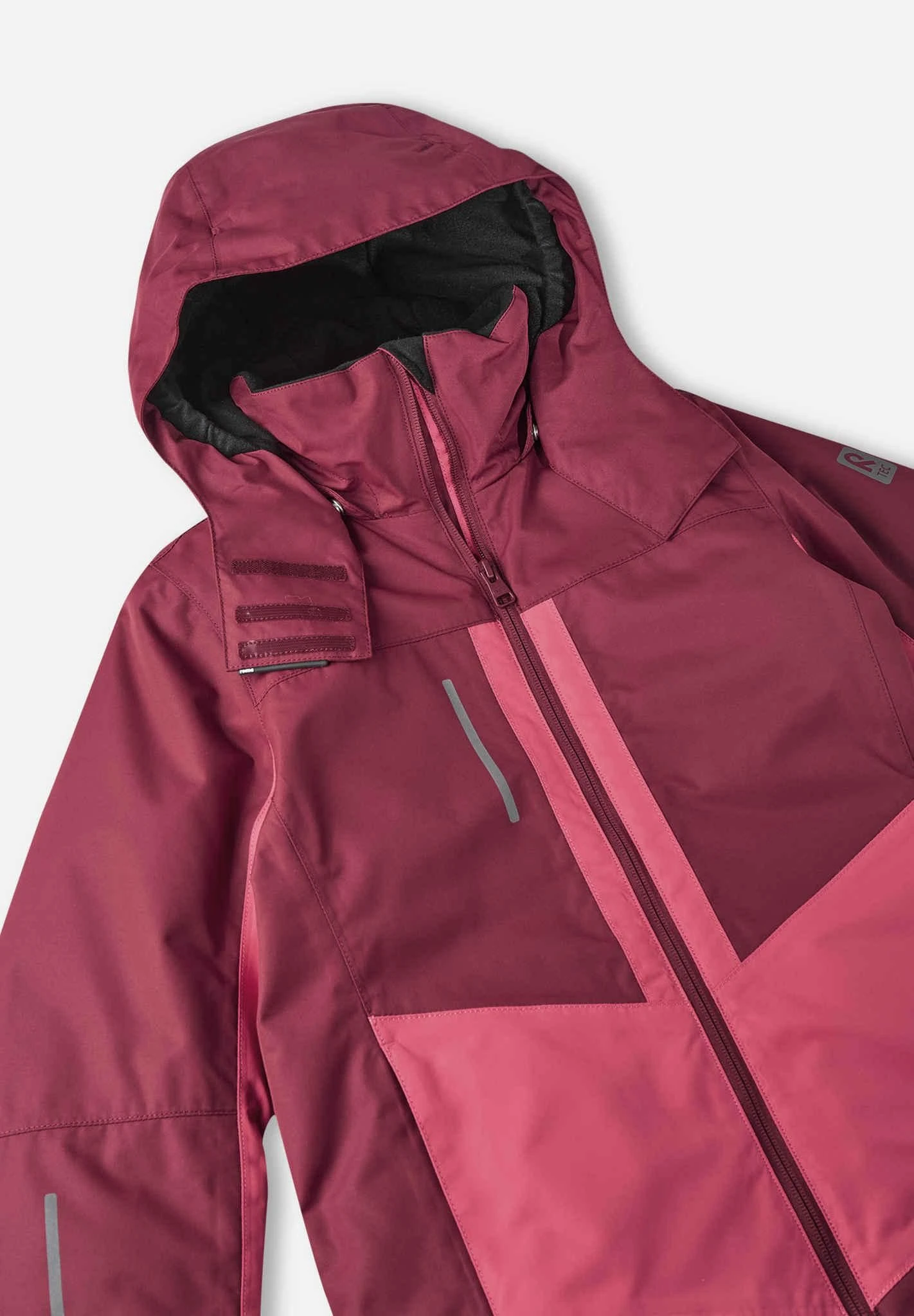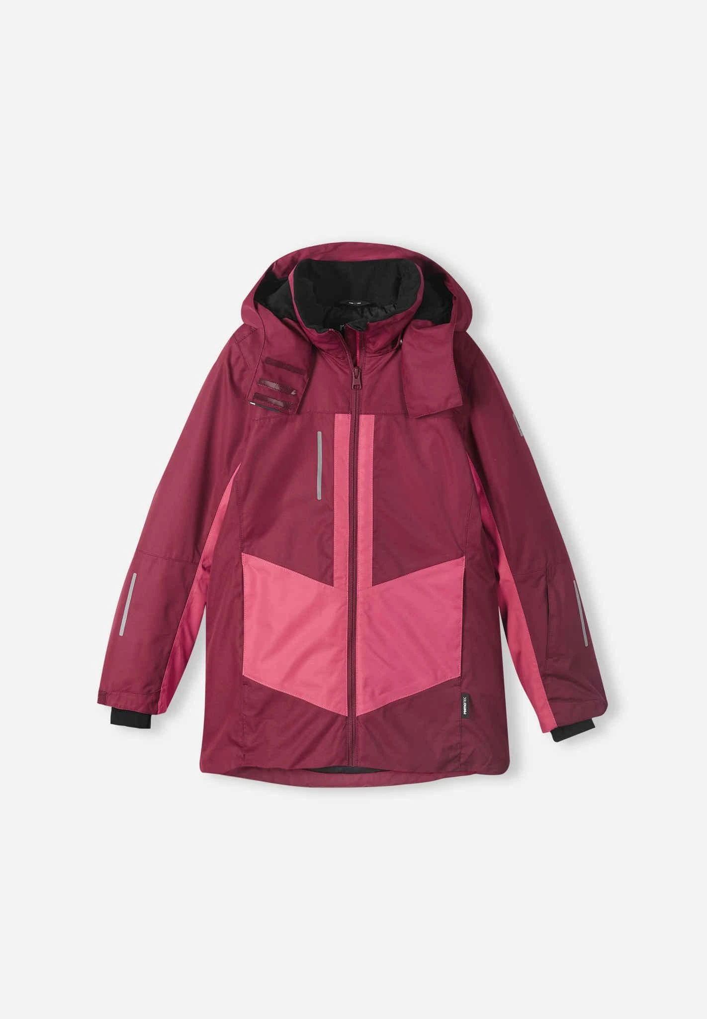 Lasten toiminnallinen, veden- ja tuulenpitävän Reimatec-toppatakin saumat on teipattu vedenpitäviksi ja materiaali on myös likaa hylkivää ja hengittävää. Takin helma ja hihat ovat säädettäviä ja vyötäröllä on lumilukko, jolla saa kiinnitettyä takin ja lasketteluhousut yhteen. Sileä polyesterivuori helpottaa pukeutumista. Nepparikiinnitteinen huppu on turvallinen, sillä se irtoaa helposti tartuttuaan kiinni johonkin. Lasketteluun sopivat yksityiskohdat kuten vetoketjutaskut edessä, älykorttitasku hihassa, verkkotasku laskettelulaseille, povitasku. Käytännöllinen talvitakki niin kaikkeen ulkoiluun kuin vauhdikkaaseen lasketteluunkin!