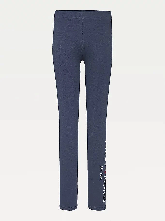 Lasten joustavat leggingsit, vasemmassa lahkeessa logoprintti.