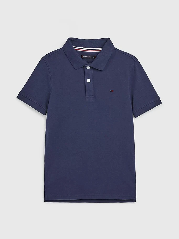 Lasten lyhythihainen pikeepaita puhdasta luomupuuvillaa. Pikeekaulus, edessä nappihalkio ja kaksi nappia. Rinnassa Tommy Hilfiger lippukirjonta.