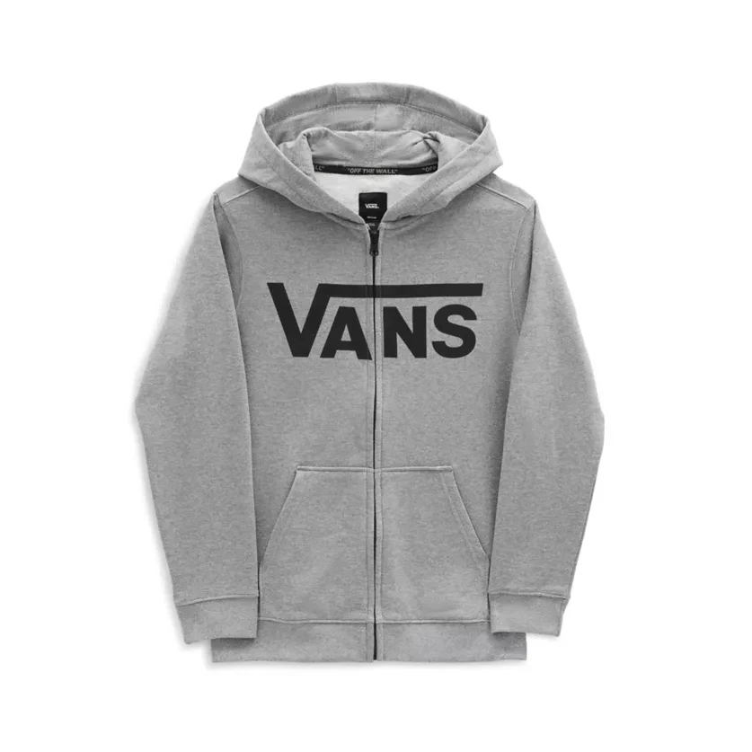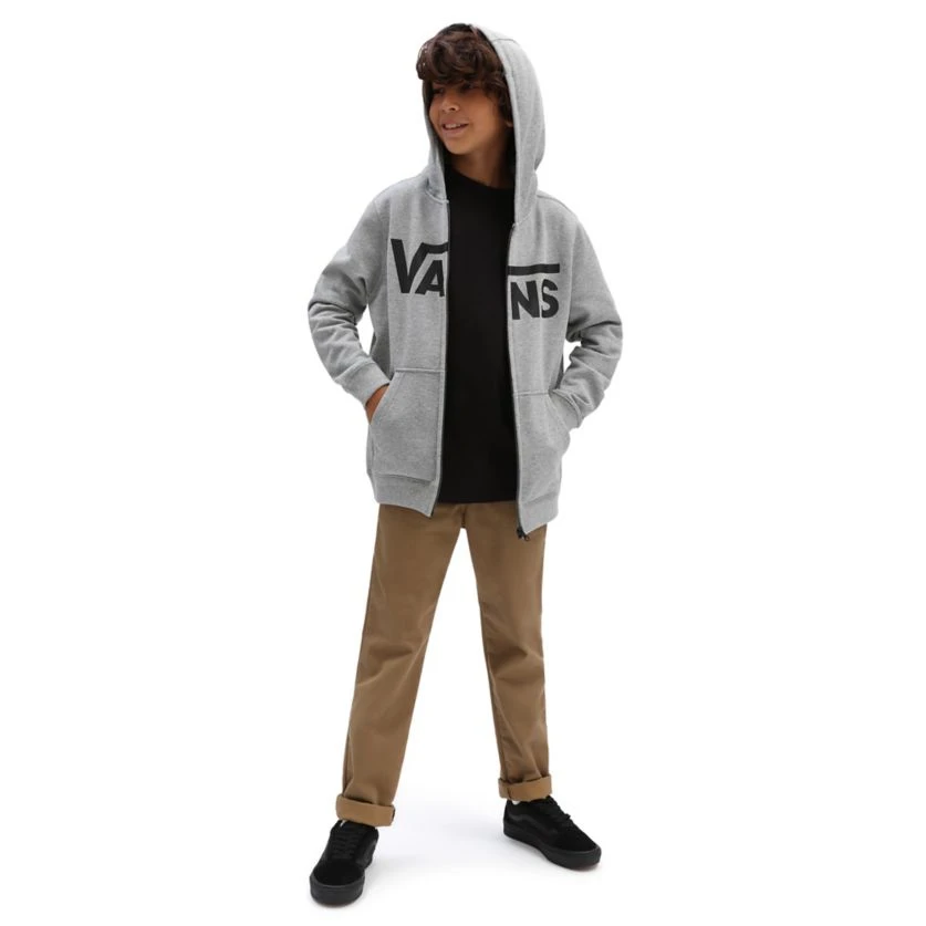 Lasten Classic Zip -hupparissa on pitkät hihat, etutaskut ja Vans-logo edessä.